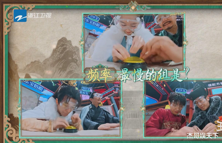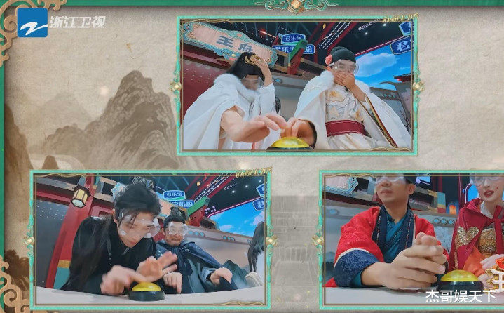全员会依次接力回答问题,在规定的时间内回答不上或者答错了,每组成员都可以疯狂地按面前那个按钮,每边频率最高的那个队伍免于惩罚。