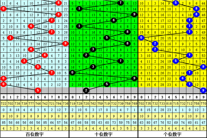 个位分析:上期出现号码7为:大号、质数,最近9期十位分别出现:0:小 号、合数;2:小 号、质数;2:小 号、质数;7:大号、质数;5:大号、质数;9:大号、合数;7:大号、质数;6:大号、合数;7:大号、质数,其中大号走势比较明显,合数开出明显弱势,个位本期注意大号、合数开出。