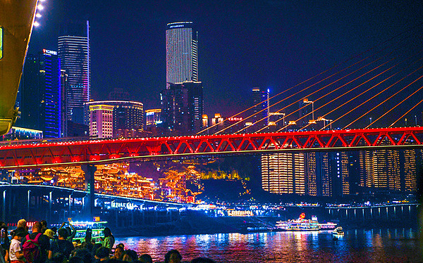包括29岁的英国学术研究者菲利克斯·唐纳森在内,许多国际游客都需申请旅游签证才能前往重庆。不久前的一个夜晚,他就在重庆乘坐夜游游船游览江面。