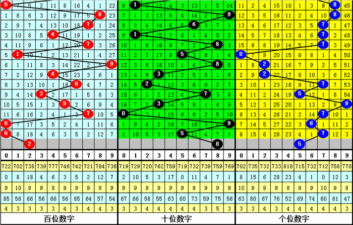 排列三第2025281期-第2025283期分别开出奖号:707、096、057。