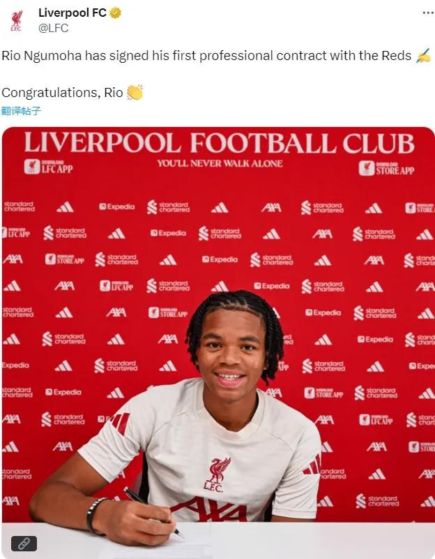 官方:利物浦宣布和里奥-恩古莫哈签下了第一份职业合同。