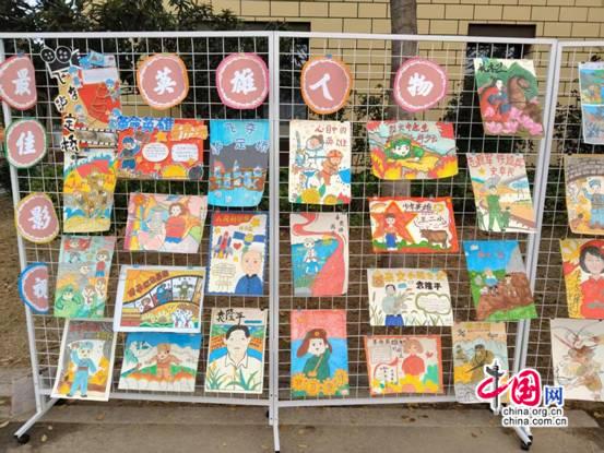 在树木繁多的校园映衬下,一幅幅水彩画、一件件手工作品,不仅色彩斑斓,更承载着孩子们对红色故事的独特理解与无限想象。