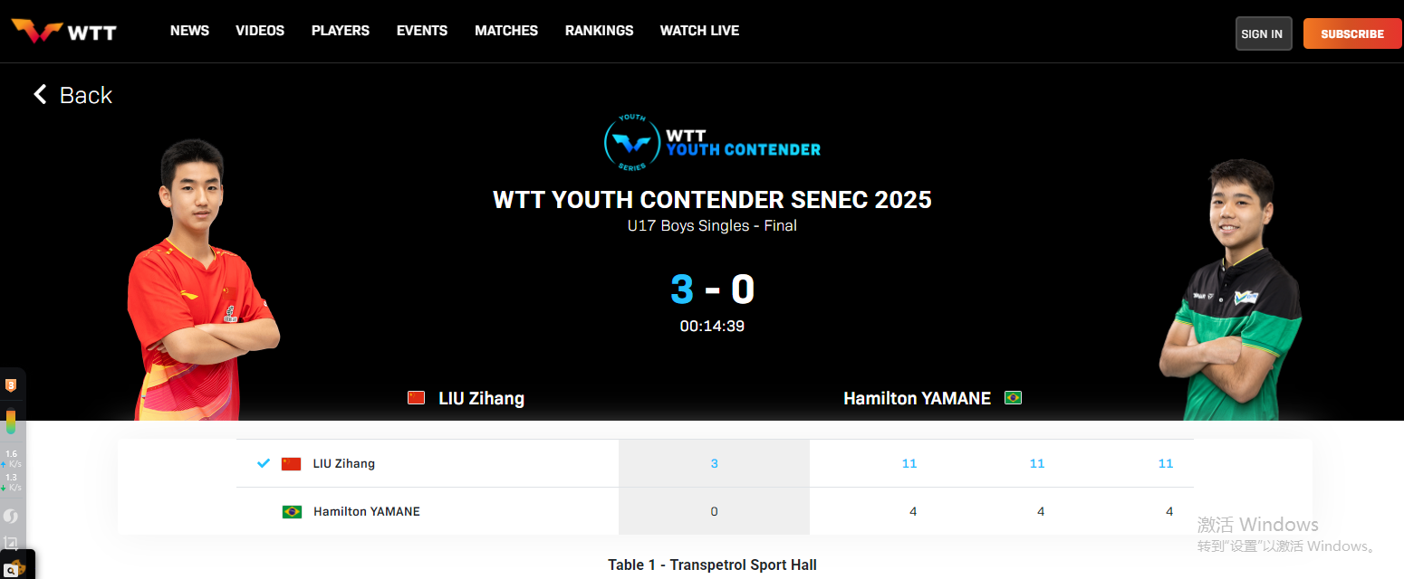 当地时间11月4日晚,年仅14岁的合肥乒乓小将刘子航,历经多轮激烈鏖战,成功摘得WTT塞内茨站男子U17组别冠军。这是他参加国际比赛以来,斩获的首个单打冠军头衔。决赛中,刘子航气势如虹,直落三局战胜巴西选手汉密尔顿,且每局都以11:4的悬殊比分干脆利落地结束战斗。